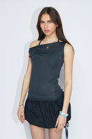 ALEX ANDRA PINTO fade black back ties top features a back extra long thin straps, allows variety of wearing options and looks made with one item. Cut to a snug fit and waist length.