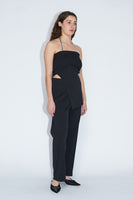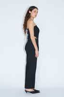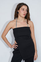 ALEX ANDRA PINTO ivory rib top is crafted from 95% cotton 5% lycra fabric. An a-symmetric snug fit strapless pattern with side slit on one side that shows a little skin.
