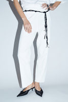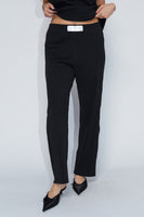 ALEX ANDRA PINTO black rib pants crafted from 95% cotton 5% lycra fabric. Straight leg pants with raw hem, elastic waistband and logo label on front.